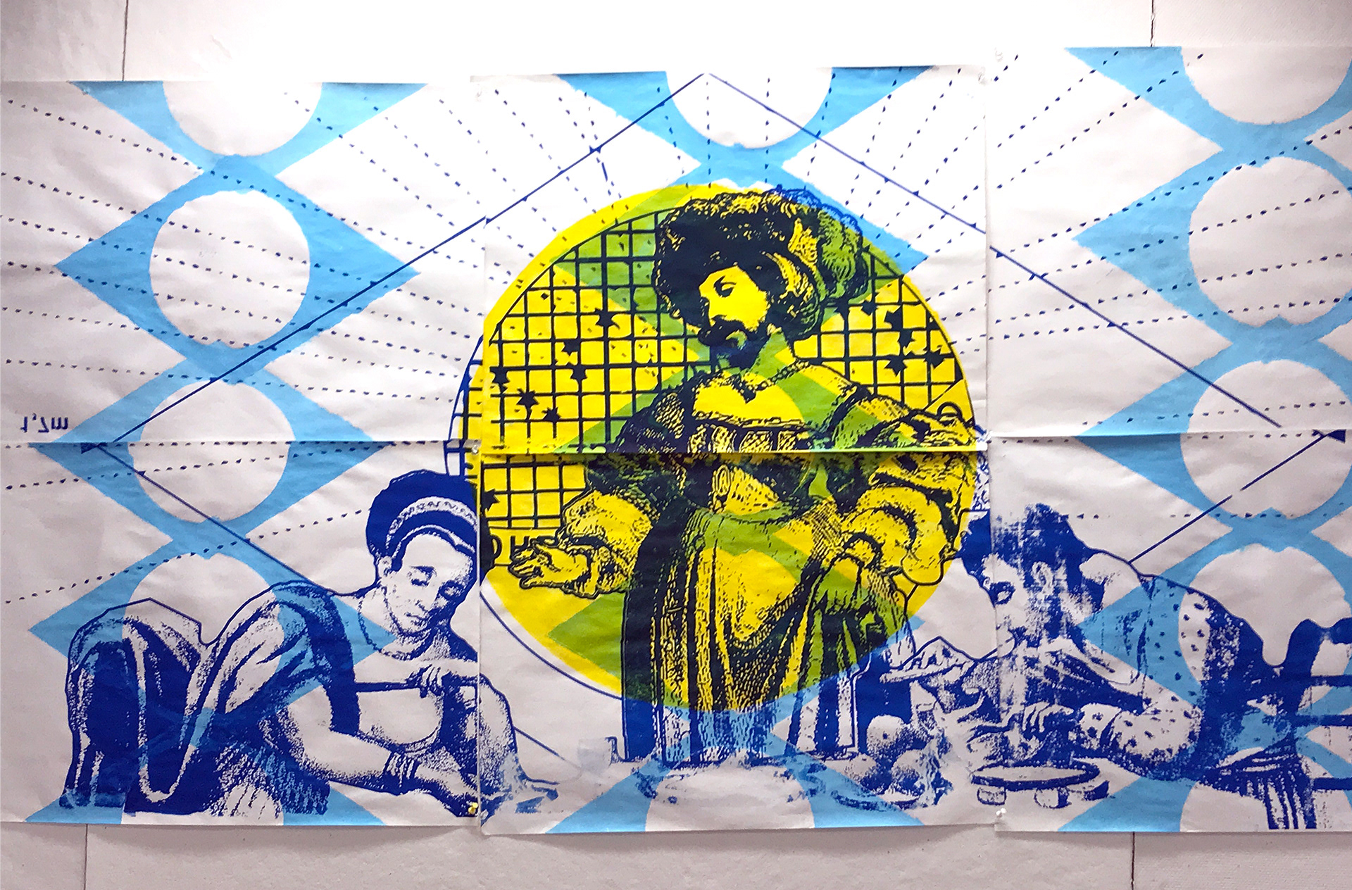Spray paint and acrylic on coloured work paper