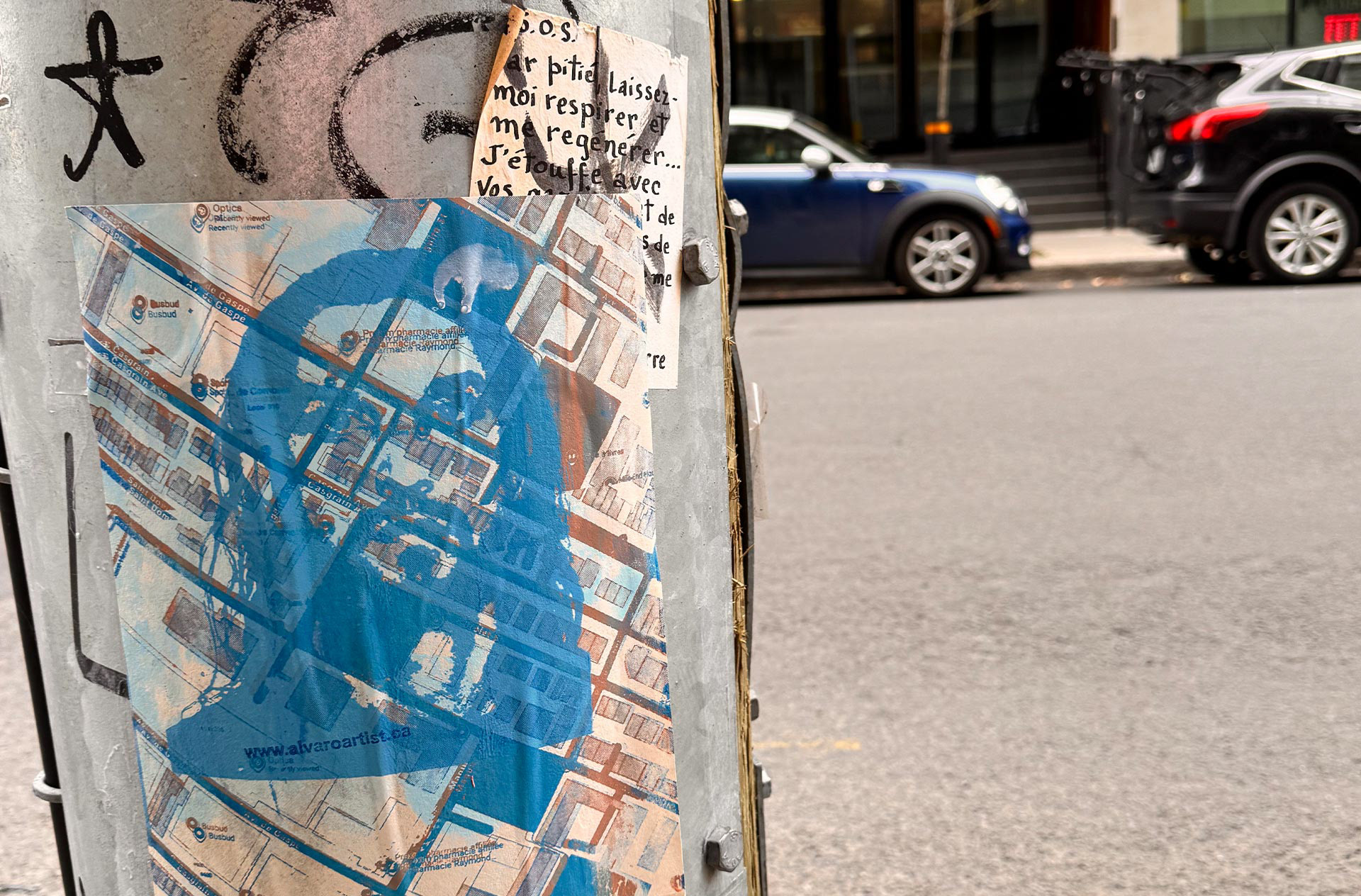 In Alvaro's visual arts practice, he develops an approach in street art: some creations are made to exist in public spaces, outside established frameworks — spontaneous, anarchic, and ephemeral.